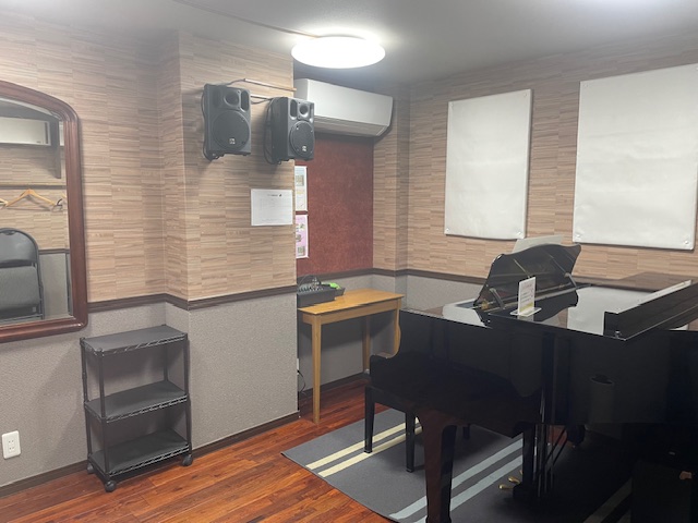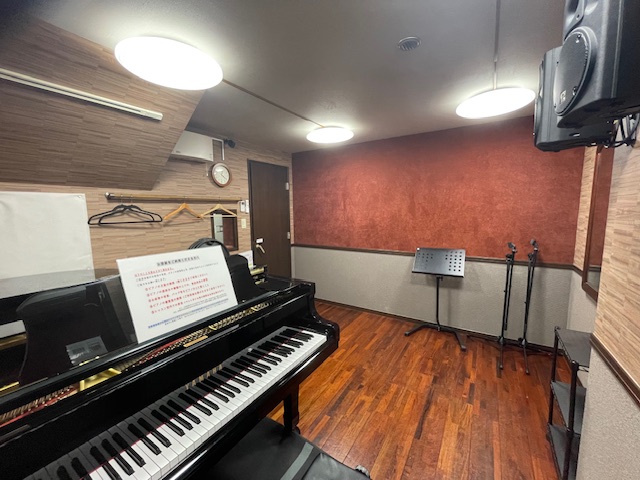 グランドピアノを使った弾き語り、マイクを使用したヴォーカル練習、ギターにより弾き語り練習など、幅広くお使いいただけます。