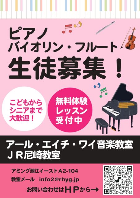 RHY音楽教室 各教室では 無料体験レッスンを実施中です❄️ お子様の習い事の王道🎹ピアノ 人に少し自慢できちゃう🎻バイオリン バンド出演が叶う🎸ギター 呼吸器使って健康に🎵フルート 普段のストレス発散に…!🥁ドラム どの楽器もレベル・年齢問わず ご受講いただけます😊 思い切って、新しいことを始めませんか?✨